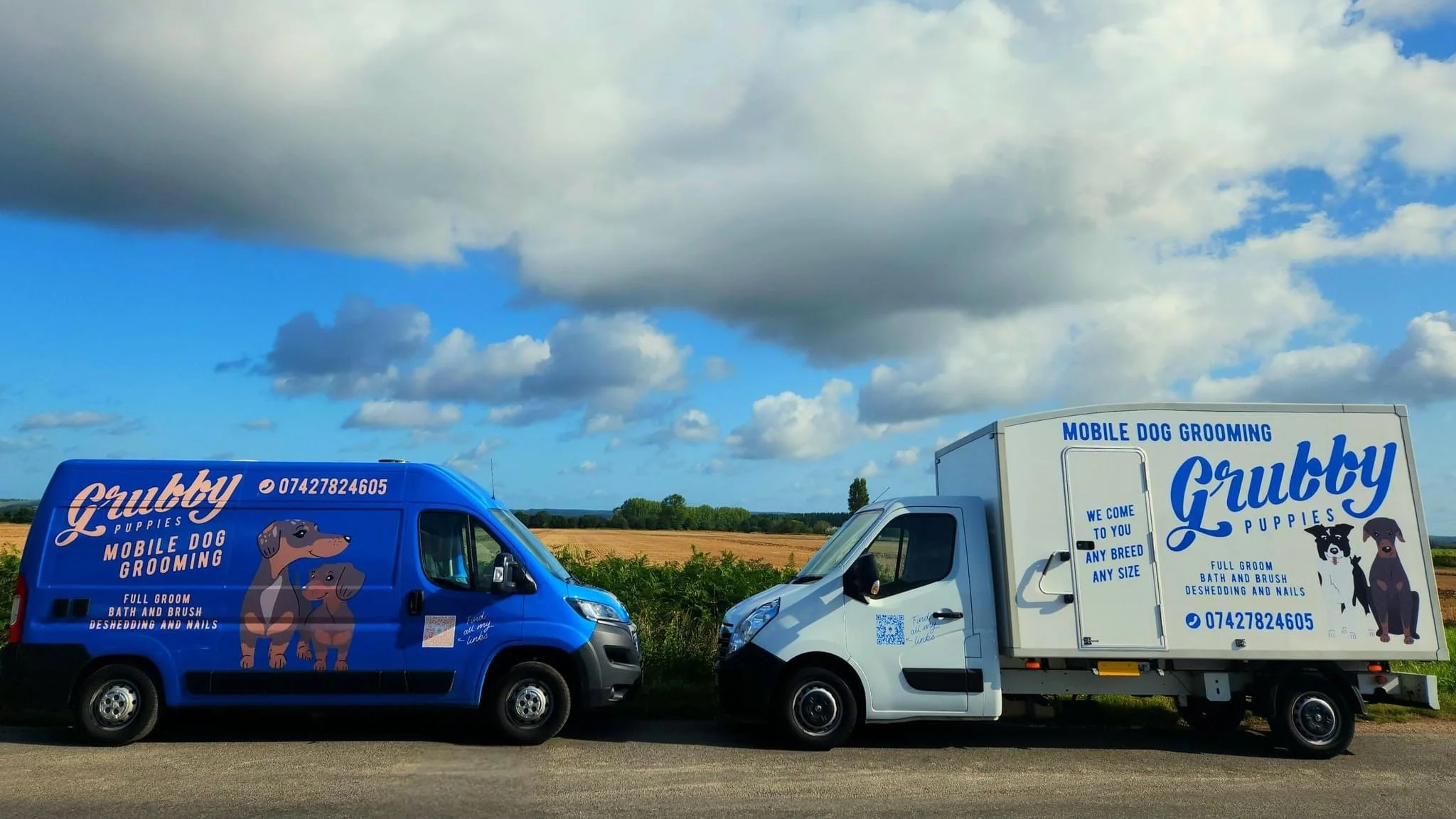 Each Grubby Puppies van is a fully self-contained grooming salon, professionally converted and maintained to the highest standards. We’ve designed them with your dog’s comfort and safety in mind — no noisy salon, , and no waiting around.